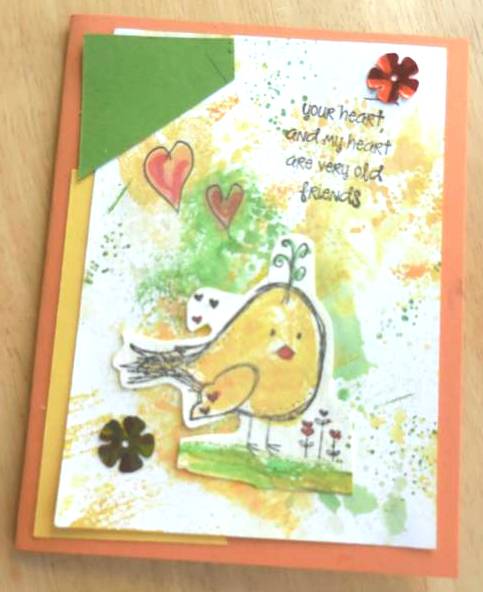 I created this background paper on a piece of design paper, and liked the way it turned out. After the stamping and colors were done, I glued it to a light blue card base.